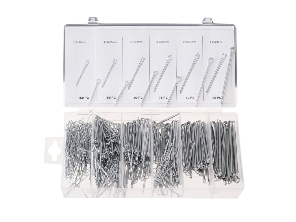 Súprava vysokokvalitných závlačiek. Používajú sa v dielňach, servisoch pre mechanikov a domáce majstrov. Sú zabalené a roztriedené v plastovej kazete.