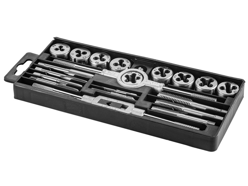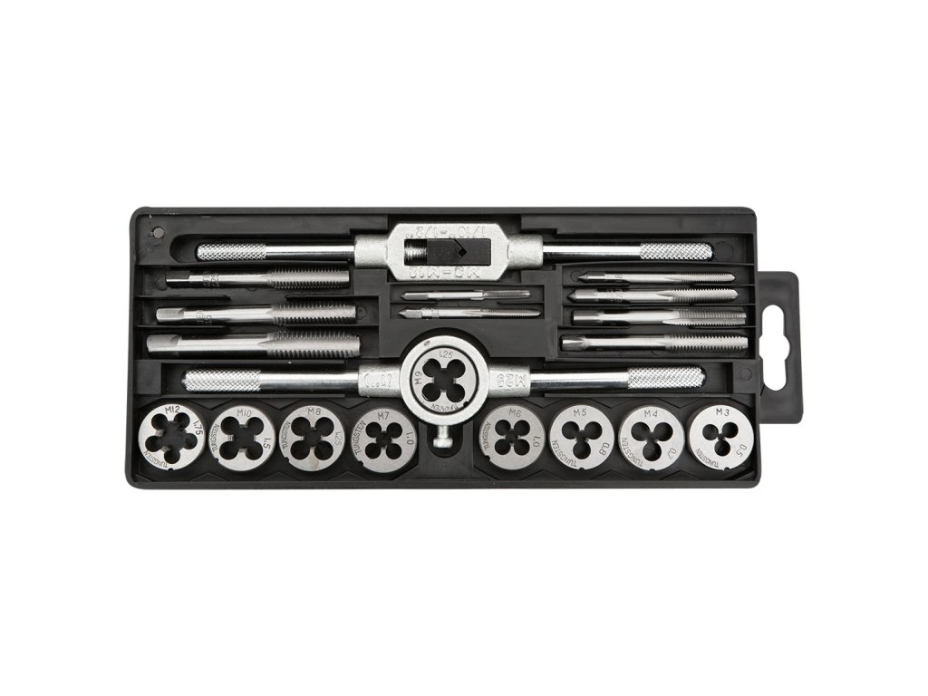 Závitorezné matrice a závitníky M3-M12, sada 20 ks., volfrámová oceľ, DIN352 / DIN233, plastový úložný box