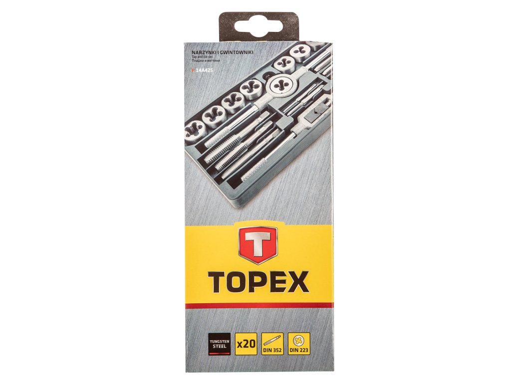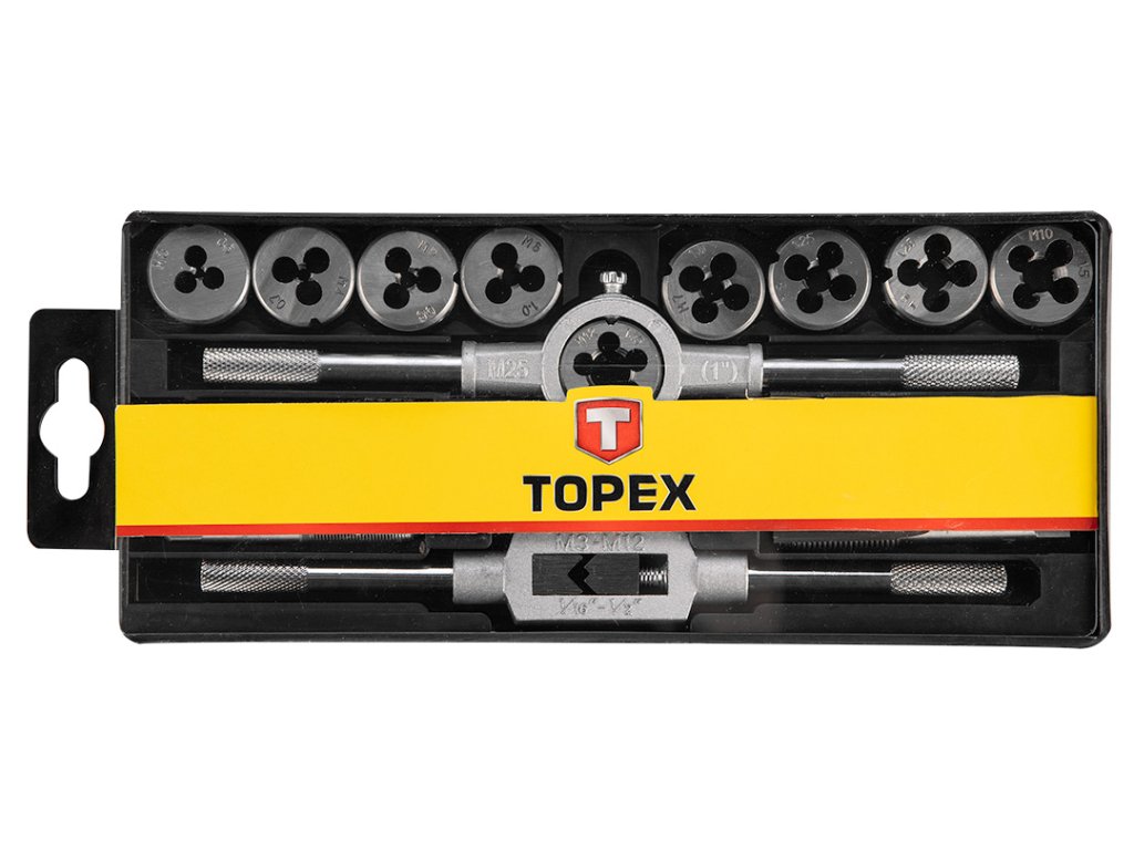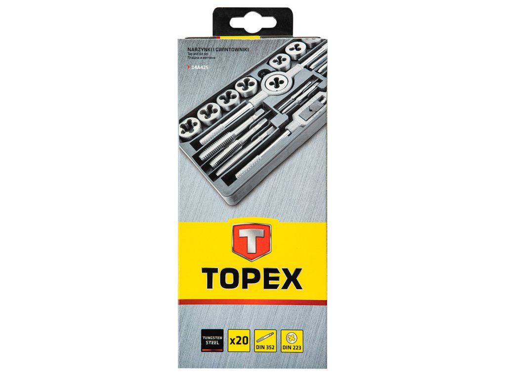 20-dielna súprava závitníkov a závitorezov TOPEX (ref. 14A425) je vynikajúcim riešením pre každého domáceho majstra. V praktickom balení nájdete gombík na závitníky a držiak na závitníky. Okrem toho sú matrice a závitníky vyrobené z vysokokvalitnej volfrámovej ocele podľa noriem DIN 233 a DIN 352, čo je zárukou spoľahlivosti. Značka TOPEX je určená pre domácich majstrov.