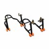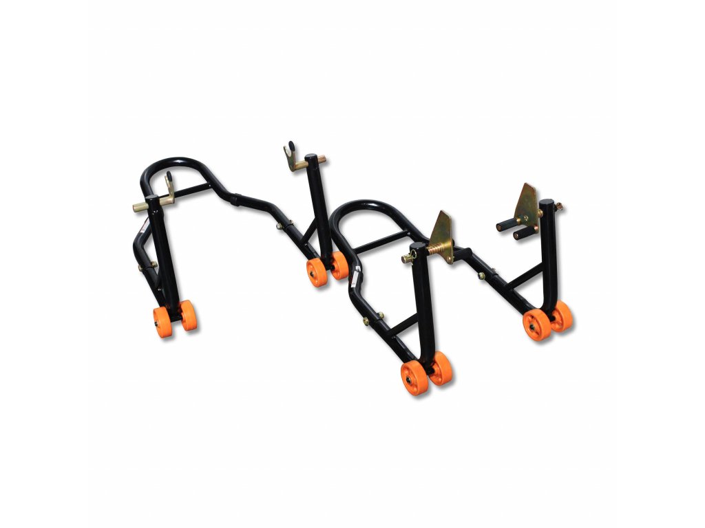 Zostava stojanov na motocykle na predné koleso a zadné koleso.