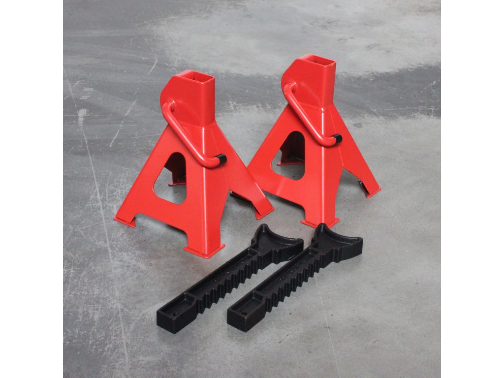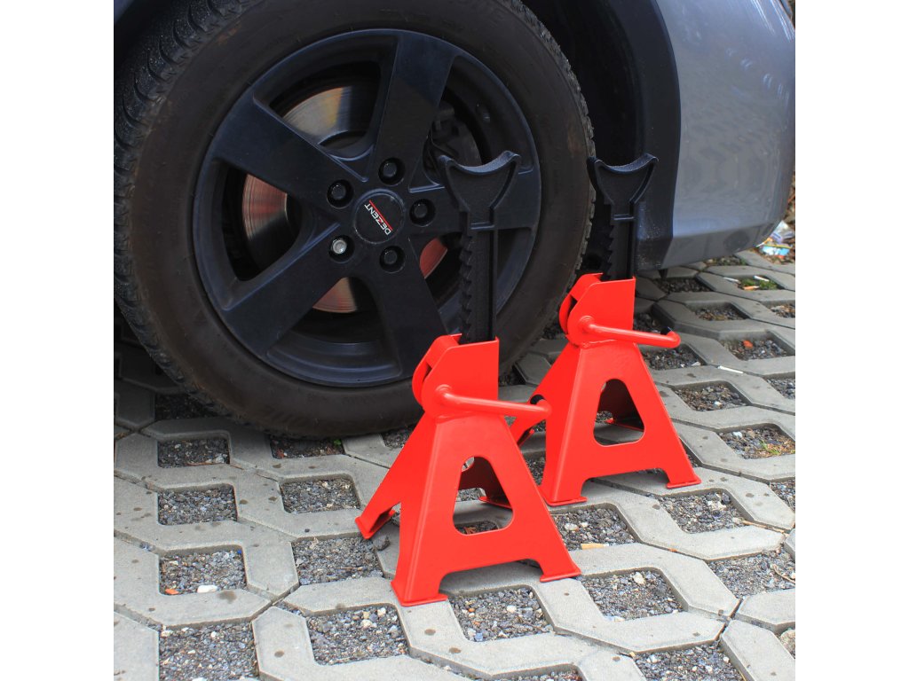 Podpery pod vozidlá s nosnosťou 3 tony 2 ks v balení, rozsah nastavenia výšky od 290 do 430 mm.