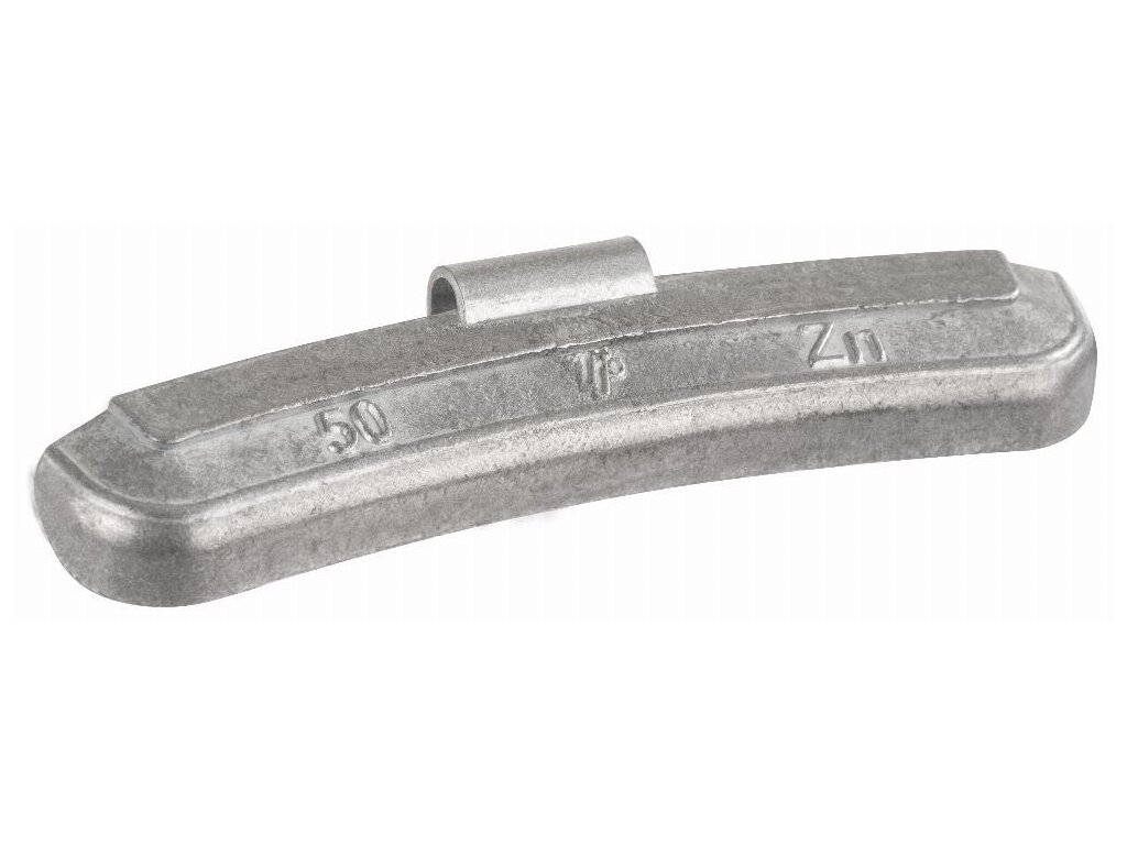Material: zinc Protective coating: none Type: knock-on Shape: rounded Colour: silver Total weight of a wheel weight: 50 g Package weight: 2.5 kg Pieces per package: 50" Country of manufacture: Poland Catalogue index: TPZNSTD-050