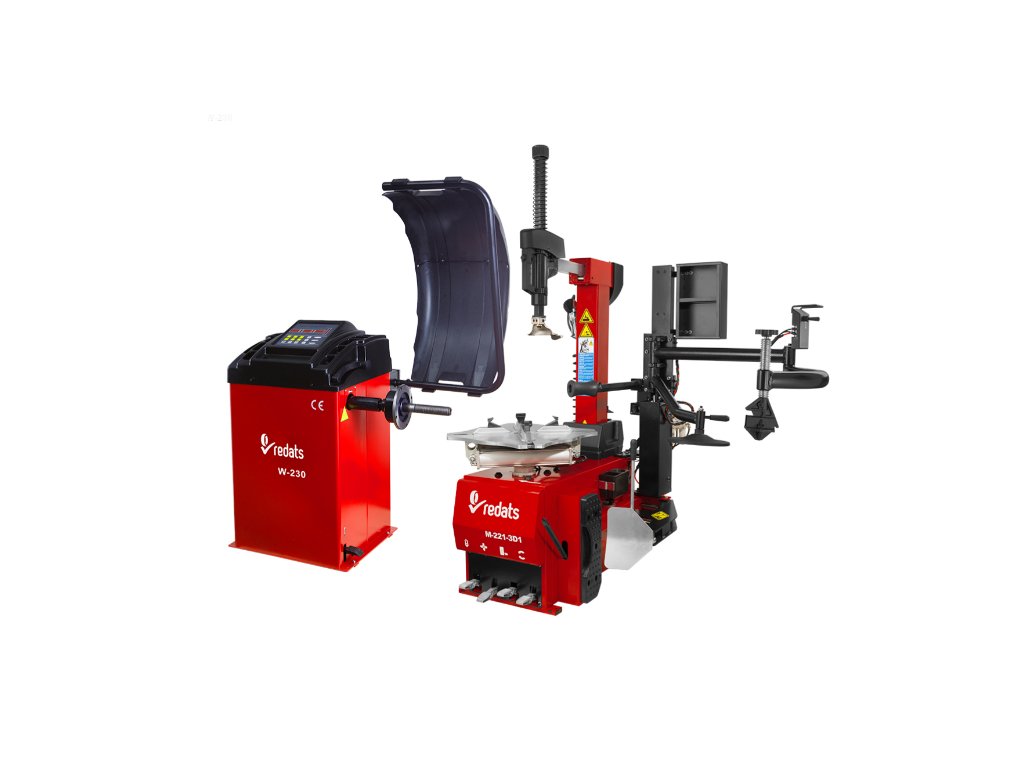 Jedinečná ponuka zvýhodneného setu, ktorá v sebe spája mimoriadnu funkčnosť automatickej prezúvačky M-221 3D-1 s prídavným ramenom a presnosť vyvažovačky kolies W-230 s laserom.